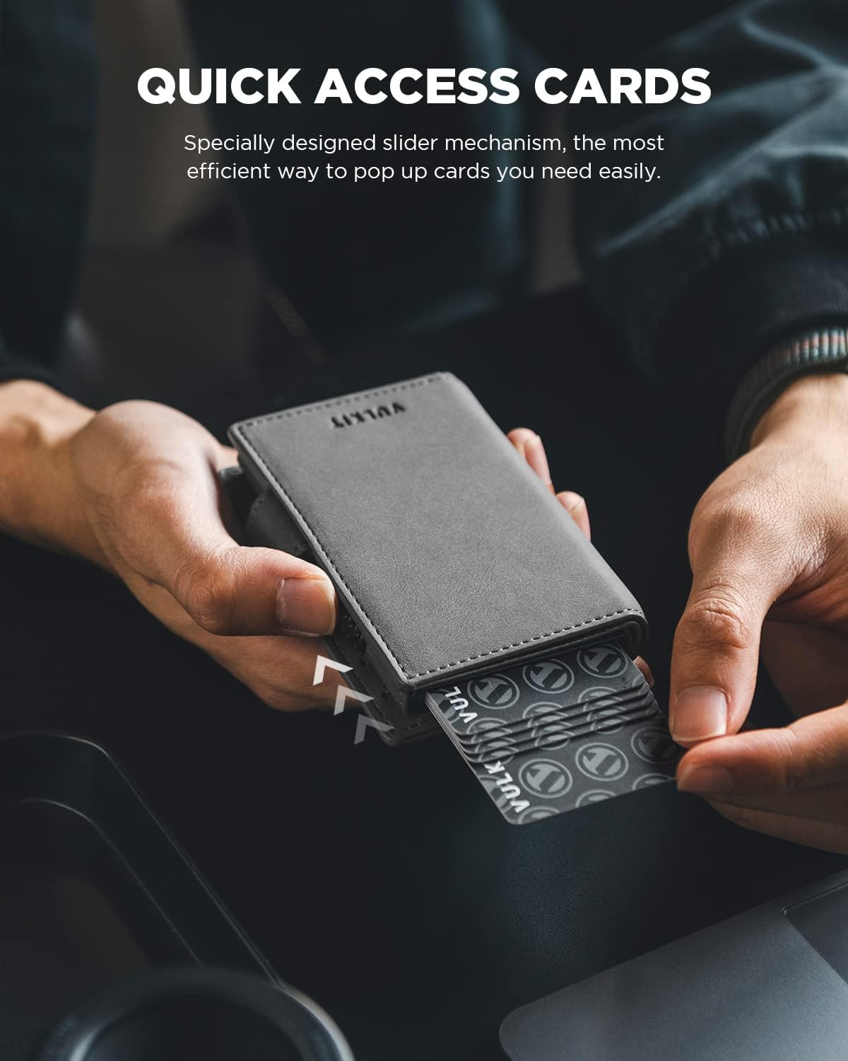 Aluminum pop-up card case: Holds 5โ7 cards with quick access.