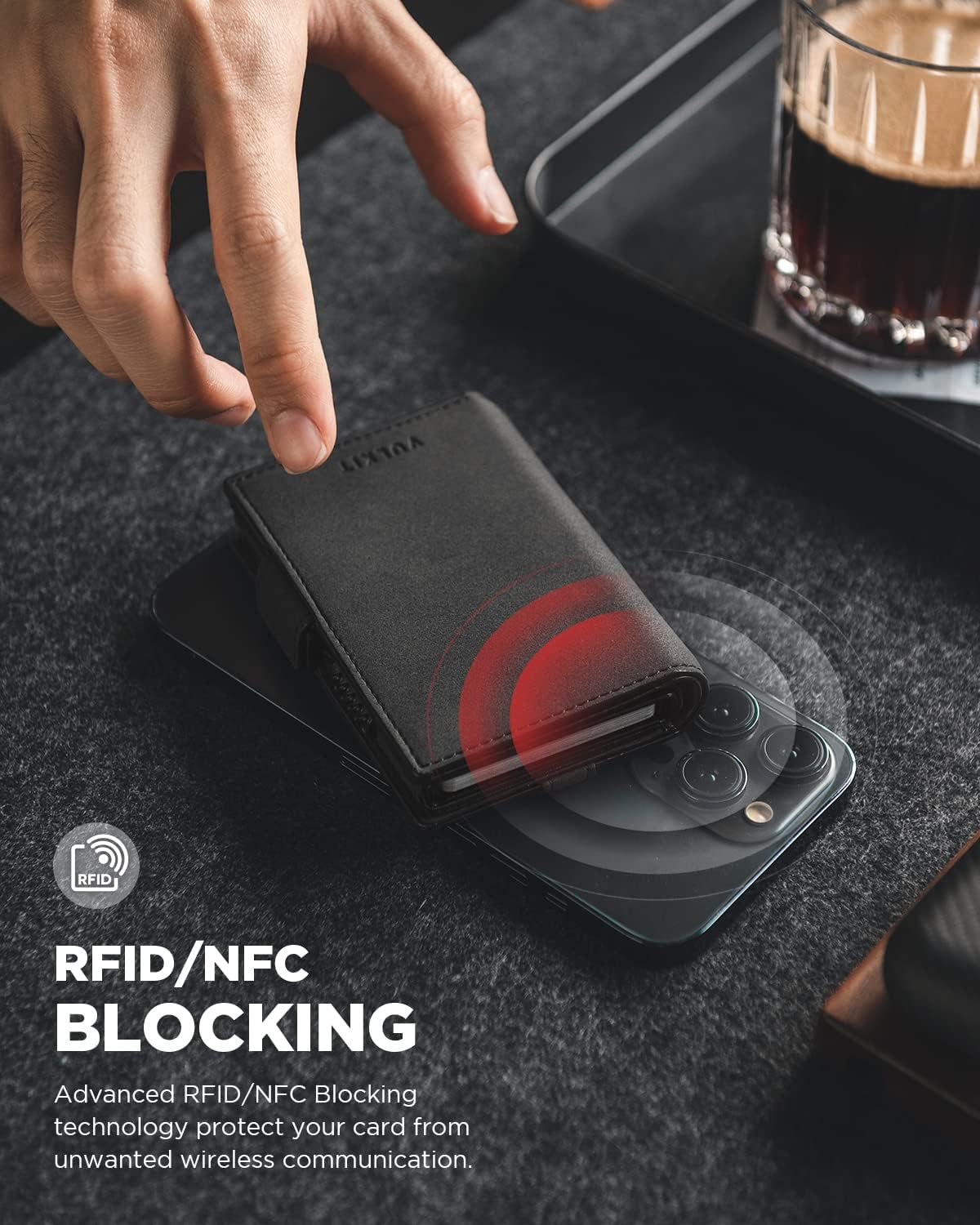 The advanced aluminum build protects against unauthorized RFID/NFC scanning, keeping your personal data safe from electronic pickpocketing.